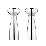 The Alfredo Salt and Pepper Mills are crafted in stainless steel. The grinder in both items are an "AllGrind - Ceramic Technology" - this is the highest quality and long-lasting technology of grinds.The size of the grounds can easily be adjusted by turning the grey screw in the bottom of the mill.