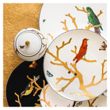 Create a vivid scene of spring life on your dinner table with the Aux Oiseaux dinnerware collection by Bernardaud. Graceful and beautifully perched birds on gilded branches or playful and vibrant butterflies shooting between sunny-hued apples and blue blooms radiate this exquisite Limoges porcelain — a fresh patina of both charm and sophistication.