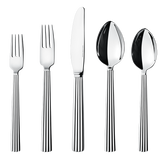 With its graphic Art Deco fluting and beautiful proportions, Bernadotte cutlery has stood the test of time to become a true classic. This 5 piece contains one dinner fork, one long dinner knife, one dinner spoon, one lunch fork and one dessertspoon, making the perfect starting point to build a larger collection.