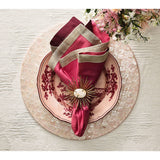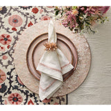 A softer take on the scalloped design motif found on traditional china dinnerware, the Camellia Collection features hand dyed Capiz shells in a muted blush. Each naturally occurring shell absorbs the dye differently allowing for stunning color variation. The shells are hand-placed in a scale like pattern, creating a purely one-of-a-kind product.