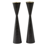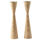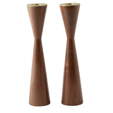 One pair of modern 9" wood candleholders with affixed brass insert available in three colors (Ash, Black, Walnut)