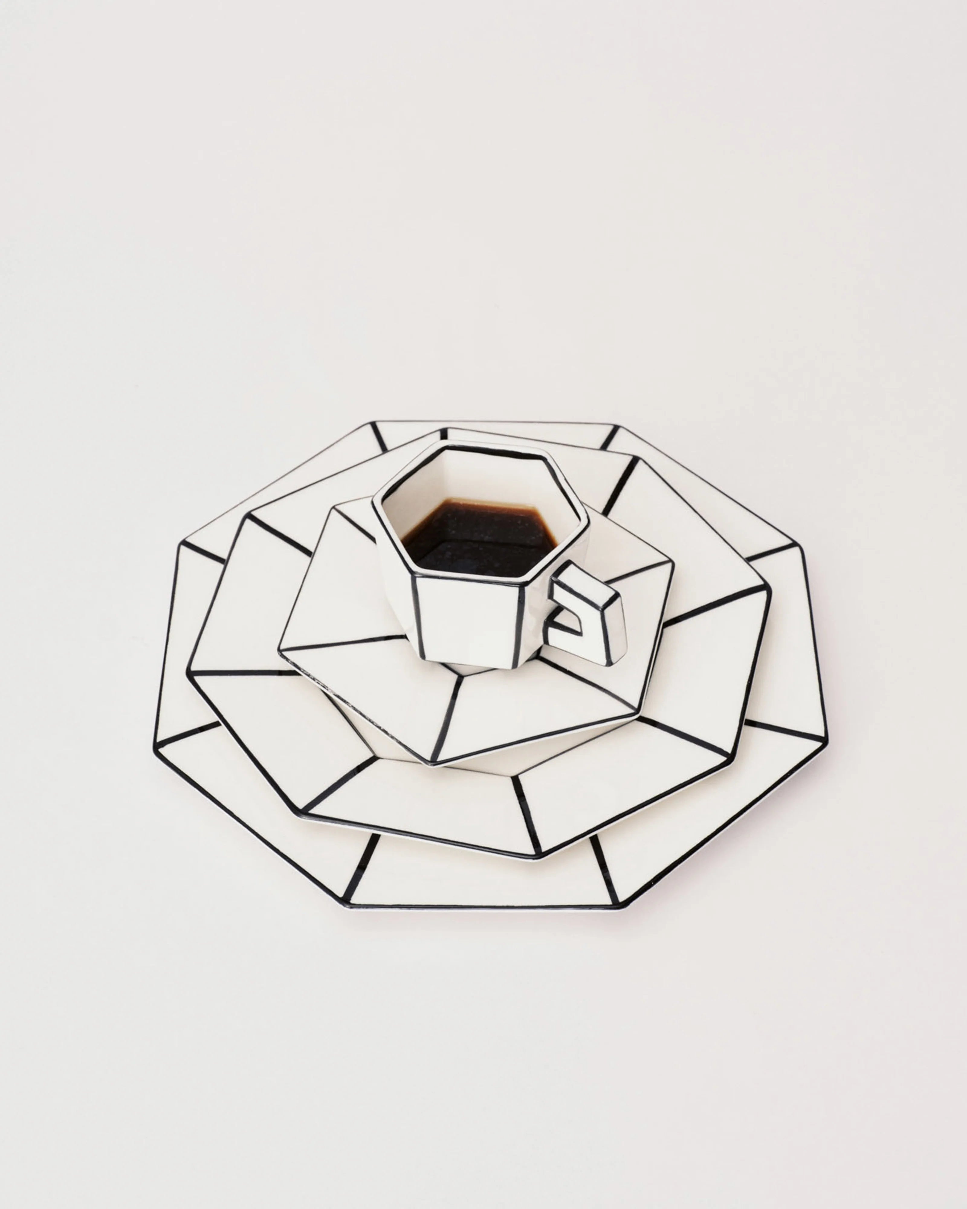 This playful espresso cup and saucer from the Carte Blanche collection by Annebet Philips bring the charm of hand-cut cardboard to porcelain. With its irregular lines and naive silhouette, it’s a tribute to the magic of the first idea.