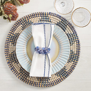 The Casbah Napkin brings serene elegance to any table, especially in outdoor garden settings. Crafted from a luxurious cotton-linen blend, it’s a must-have for every entertaining lifestyle. The intricate hand-embroidered details add brilliant blue accents of refinement, perfect for elevating casual gatherings and sophisticated soirées.