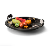 The rich brown and blonde hues of the horn veneer and natural horn handles come together to create a statement piece that exudes warmth and adds depth to any space it enters.
