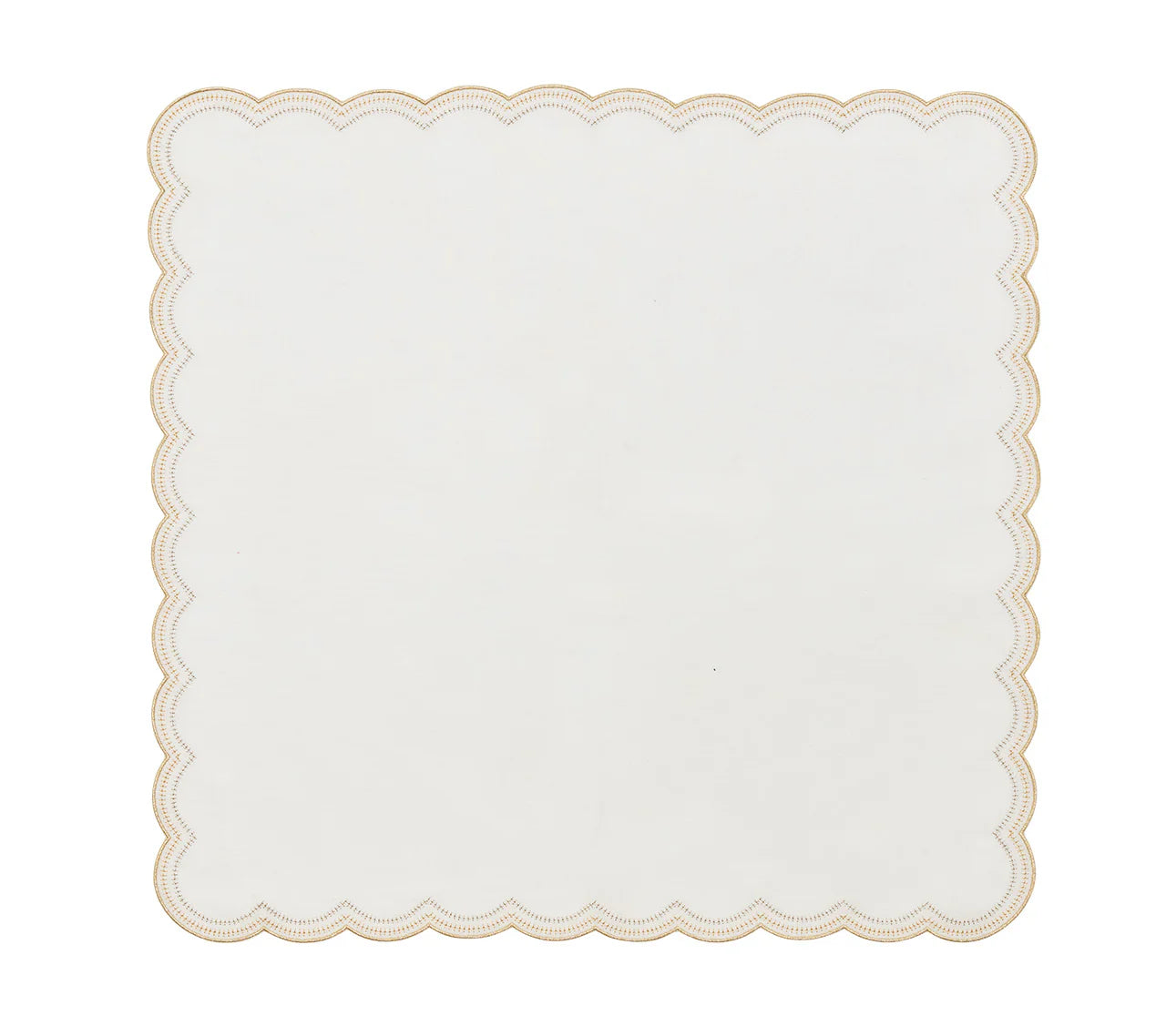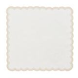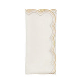 The Lune Napkin is playful with crescent swirls, echoing the curves of round tables and sculptural tabletops. Fine embroidery traces the scalloped edges in layered shades of gold and silver. Pair with the matching placemat and a sophisticated napkin ring to create an unforgettable table setting.