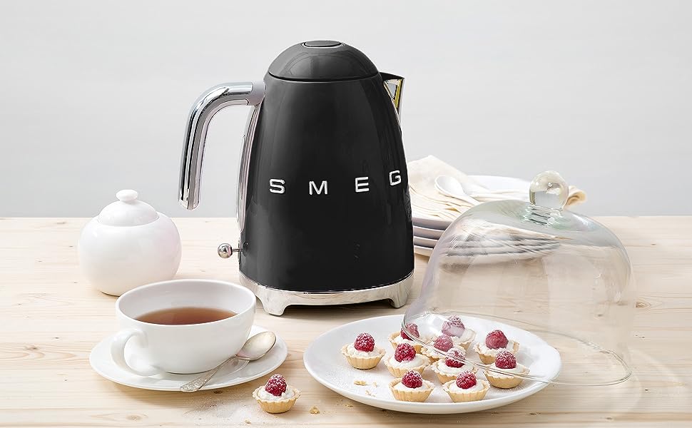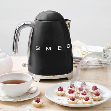 With its bold black glossy finish and polished chrome accents, this Retro-Style Electric Kettle brings a confident, modern edge to SMEG’s iconic design. Built for everyday convenience, it heats water quickly and precisely while adding a refined statement to your countertop.