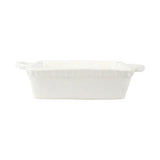 The Pietra Serena Square Baker features a handpressed design around its edges and transitions easily from oven to table.