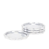 Scalloped and compact—the Sun Coasters carry the rhythm of the Sun series into a smaller form. Made in sets of four, each coaster is carved from solid stone or cast in metal, then finished by hand. At 3.5″ across, they’re scaled for glasses and mugs, offering daily function with sculptural presence. Over time, stone reveals its natural veining while brass or aluminum develops a soft patina, making every set unique to its material and use.