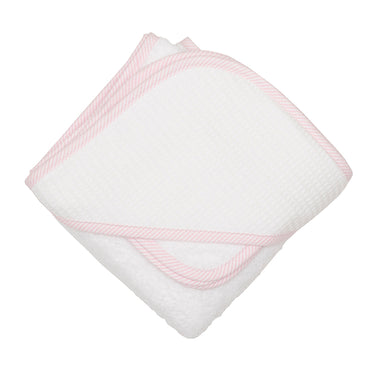 The infant hooded towel and washcloth set is made of extra soft, pure cotton terry for newborn’s sensitive skin. The towel is so large that it can last well into the toddler years. The hood is covered with a pique layer, which helps to hold a monogram beautifully and is backed with terry cloth for extra absorbency.