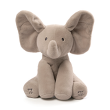 Flappy Elephant animated plush plays peek-a-boo and sings Do Your Ears Hang Low. Ears flap during play to delight baby. Made from high-quality, huggable plush material. Surface-washable; ages 0+; three AA batteries included with purchase. 12 inch height.