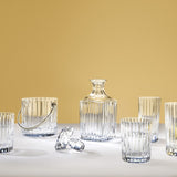 The Baccarat Clear crystal Harmonie tumbler has a marvelously linear silhouette that would be ideal for any stocked bar. Consecutive parallel cuts travel cleanly along the Clear crystal grazing the tumbler from its lip all the way down to its thick base. These lines emphasize the verticality of the tumbler as you sip your quality spirits and mixed drinks.