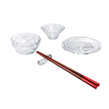 The Swing Universal Set consists of four crystal pieces, a chopstick holder, a small plate, a coupelle and a small bowl. This versatile set is not limited to just sushi, use the plates for appetizers and the bowls as individual dressing or topping vessels!