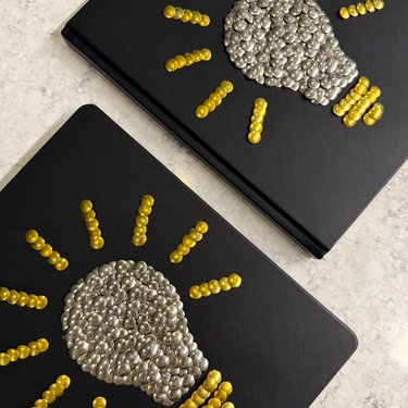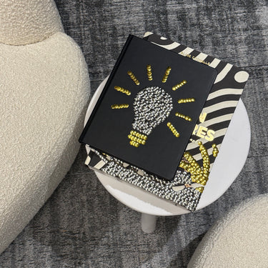Capture your brightest ideas in this hand-embellished journal, featuring a striking light bulb design. A one-of-a-kind gift for visionaries and dreamers alike.