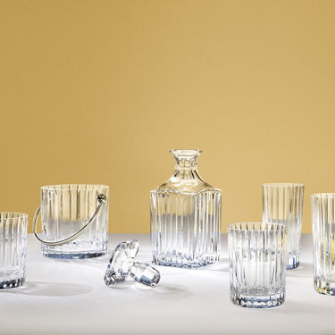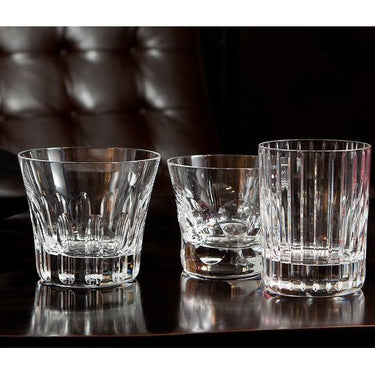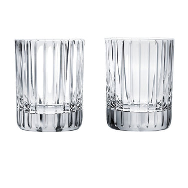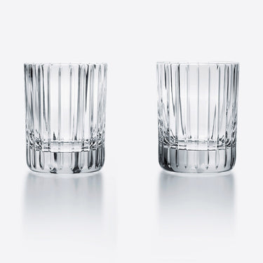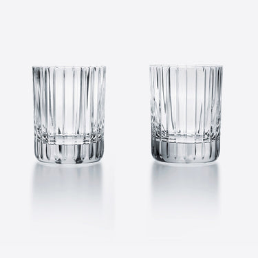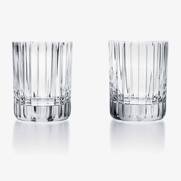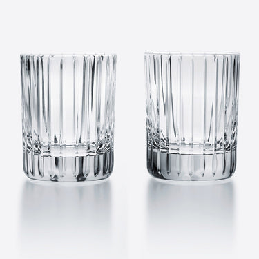 The Baccarat Clear crystal Harmonie tumbler has a marvelously linear silhouette that would be ideal for any stocked bar. Consecutive parallel cuts travel cleanly along the Clear crystal grazing the tumbler from its lip all the way down to its thick base. These lines emphasize the verticality of the tumbler as you sip your quality spirits and mixed drinks.