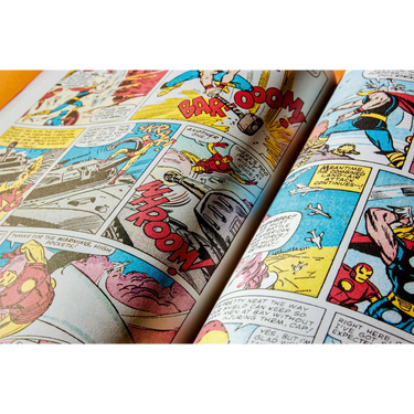 Relive the classic early adventures of Avengers Nos. 1–20 in an XXL-sized edition that’s bigger than the Hulk’s fist, weightier than Thor’s hammer, and with more extras than Iron Man’s armor. TASCHEN has attempted to create an ideal representation of these books as they were produced at the time of publication. The most pristine pedigreed comics have been cracked open and photographed for reproduction in close collaboration with Marvel and the Certified Guaranty Company. Each page has then been digitally remastered using modern retouching techniques to correct problems with the era’s inexpensive, imperfect printing—as if hot off of a world-class 1960s printing press.