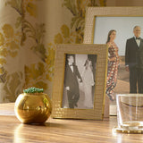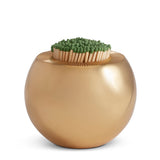 This solid brass match striker is sand cast using an ancient artisanal technique, creating a pitted surface that has an organic appeal. It offers a perfect balance between form and function, with a hollow center that holds standard matches, and a tasteful round shape that adds refinement to any mantle or coffee table.
