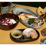 The porcelain Terra condiment bowl is hand-crafted and glazed in the L'Objet Portuguese atelier. Its organic shape is refined with glazed finishes that bear the idiosyncrasies of their namesake materials: wine, leather, stone, iron, and seafoam.
