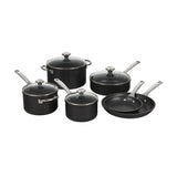 Set includes: 8" Toughened Nonstick PRO fry pan, 11" Toughened Nonstick PRO fry pan, 2 qt. Toughened Nonstick PRO saucepan, 3 qt. Toughened Nonstick PRO saucepan, 3 1/2 qt. Toughened Nonstick PRO saute pan, 6 1/3 qt. Toughened Nonstick PRO stockpot.
