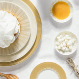 Since 1863 in Limoges, France, Bernardaud has made a statement with high-quality porcelain creations. The Sol Collection offers a contemporary design, inspired by the beautiful sun rays and its yellow gold detailing.