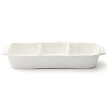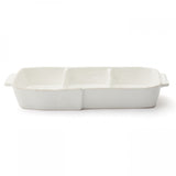 Arrange carrots, celery, and a delicious dip in between the two on the Lastra White Small Three Part Server. Handcrafted of Italian stoneware, this collection exudes warmth and simplicity.