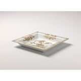 Porcelain change tray with decoration in pure gold from the Oriente Italiano Gold collection. A distant journey, craftsmanship, a unique and inimitable design distinguish the change tray in fine porcelain embellished with a hand-painted pure gold floral motif. The flower of the Garofano (Carnation) traces the classic Ginori 1735 lines to preserve every valuable object with refined care.