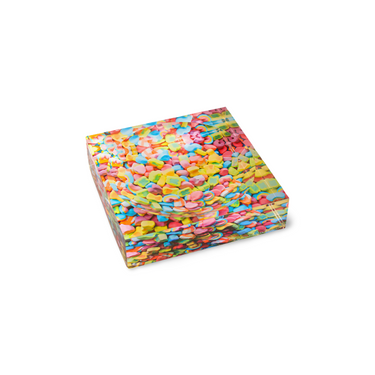 Each candy dish is 6”x 6”x 1.5” and made from 100% acrylic.