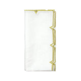 The simplicity of the beautiful linen Divot Napkin gets a twist with the use gold divot edging. These crisp white linen napkins radiate class and will elevate any table setting. A perfect white linen napkin staple, the contrast gold edge is a spry departure from the ordinary.