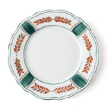 Porcelain from Limoges in white, wave-shaped, green and terracotta colour.
