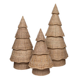 Create the magic of a winter wonderland with a fabulously unique forest of trees in beautifully hand-woven rattan. This statement-making spin on the classic evergreen is visually stunning, natural, and neutral for decorating indoor spaces with a festive sense of drama and an undeniable element of whimsy.