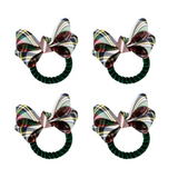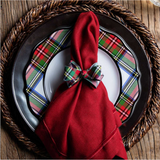 These tuxedo-inspired napkin rings, trimmed in a signature Stewart Tartan, will make a festive statement at every place setting. Handsewn with rings wrapped in soft velvet ribbon, these dapper bows will festoon any table with festively elegant flair.