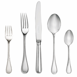 This 5-piece sterling silver Albi flatware set contains the basics for one diner including a dinner spoon, dinner fork, dinner knife, salad fork and coffee/tea spoon.