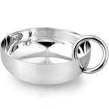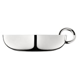The large silver plated Vertigo bangle bowl with single handle is perfect for serving snacks like nuts, olives or candy or could be used as a trinket catchall. Vertigo’s bold motif — a subtly asymmetrical, thick ring often placed playfully askew — can be found on every piece in the collection designed by Andrée Putman.