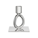 Designer Andrée Putman emboldened Vertigo's motif with the subtle asymmetry of rings placed at playful angles. The silver-plated Vertigo single-ring candlestick holder holds a single taper candle. It adds a modern and exuberant elegance to any room.