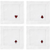 The Simboll cocktail napkins were created for the Simboli Collection. These cocktail napkins feature a playing card motif embroidered against hemstitched linen.