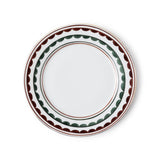 Elegant tableware, current and fresh, which stands out for its scallops in green and brown around the plate and finished off with a gold edge. A sober tableware perfect in summer or winter.