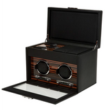 Take your fine timepieces for a ride in a Roadster. Aged wood dashboards, chrome spoked wheels, leather that is glove soft. Roadster - inspired by the best of British motorcars, Jaguar, Aston Martin, Bristol and the like. Turning your watch perfectly to a precise number of turns. Ebony macassar polished wood, the perfect backdrop for your watch.
