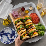 Dimensions: 24"L, 15.5"W, 2"H. Made of Melamine, BPA Free.