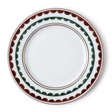 Elegant tableware, current and fresh, which stands out for its scallops in green and brown around the plate and finished off with a gold edge. A sober tableware perfect in summer or winter.