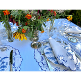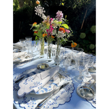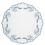 This placemat is woven from natural linen offset by floral embroideries and a contrast trim.