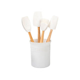 This set of silicone utensils is the full assortment of our Craft Series range. It’s perfect for outfitting a new kitchen or complementing a Le Creuset collection. A stoneware crock keeps tools organized.