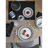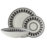 With its striking patterned arches in navy, maroon and black, the beautifully crafted Palazzo dinnerware set uses motifs from classical architecture in a modern silhouette perfect for contemporary table settings.