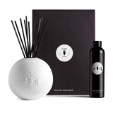 The apothecary experience is designed to beautify the air, nourish the body, and lift the spirit. Introducing Apothecary home fragrances. A sculpted porcelain orb with perfumed oil emanates continuous fragrance. A refresher oil and reeds are available for when your diffuser needs replenishment.