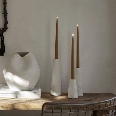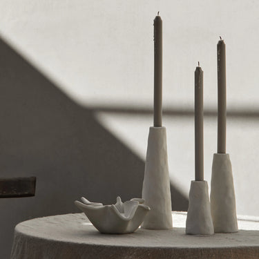 Radiating a volcanic and earthy allure, these candle holders hold the flame for a mesmerizing evening.