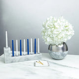 The modern Brillante Menorahs help your holiday to shine. Hand-sculpted from Italian Carrara marble, this is the piece you'll reach for each Chanukkah. We precision-machine and polish the metal cups so they securely hold your candles (no more melting the bottoms!) and help them to burn straight down (minimal wax clean up!)