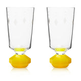 In this new interpretation, Reflection Copenhagen have managed to incorporate the gem faceted colored base to their diamond engraved crystal glass. The bright yellow bevelled base will spruce up any drink. If these two handcrafted glasses don’t put you in the mood to hold a dinner party, we don’t know what will. These glasses come as a set of two and will match a wide range of our crystal glasses.