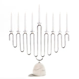 The Coluna Menorah is for people who love modern design, and tradition. Crafted from Italian Carrara Marble and Nickel-plated metal, the menorah was designed to be passed from generation to generation, bringing light and joy to the holiday.