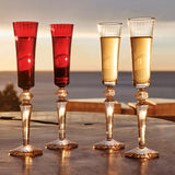 Experience the magic of the Orient with Mille Nuits Flutissimo Flute. The sleek design features a smooth narrow bowl and an elegant diamond-shaped center, all accented with intricate detailing. Choose from clear or vivid colored crystal.