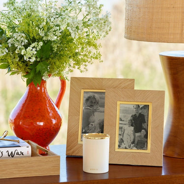Inspired by Art Deco-style wood marquetry, the Marcello frame is crafted in light European oak with an oiled finish, enhanced with brass edging, which give it a contemporary twist. It adds a fresh, stylish look to a table of photographs and is ideal for gifting.