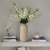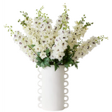 The Delphinium Bundle is a part of the Emily by Emily modern faux floral core collection. The creamy white blooms with the delicate black centers create a lush and full bundle in any vase.