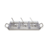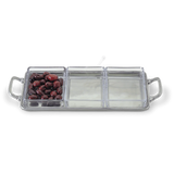 This pewter tray, with three Italian lead-free crystal inserts, is versatile and perfect for presenting crudité, sweets, or garnishes. Its elegant design works in any room and can also be used as a valet tray. Paired with 3 unique Gabriella Cocktail Forks.